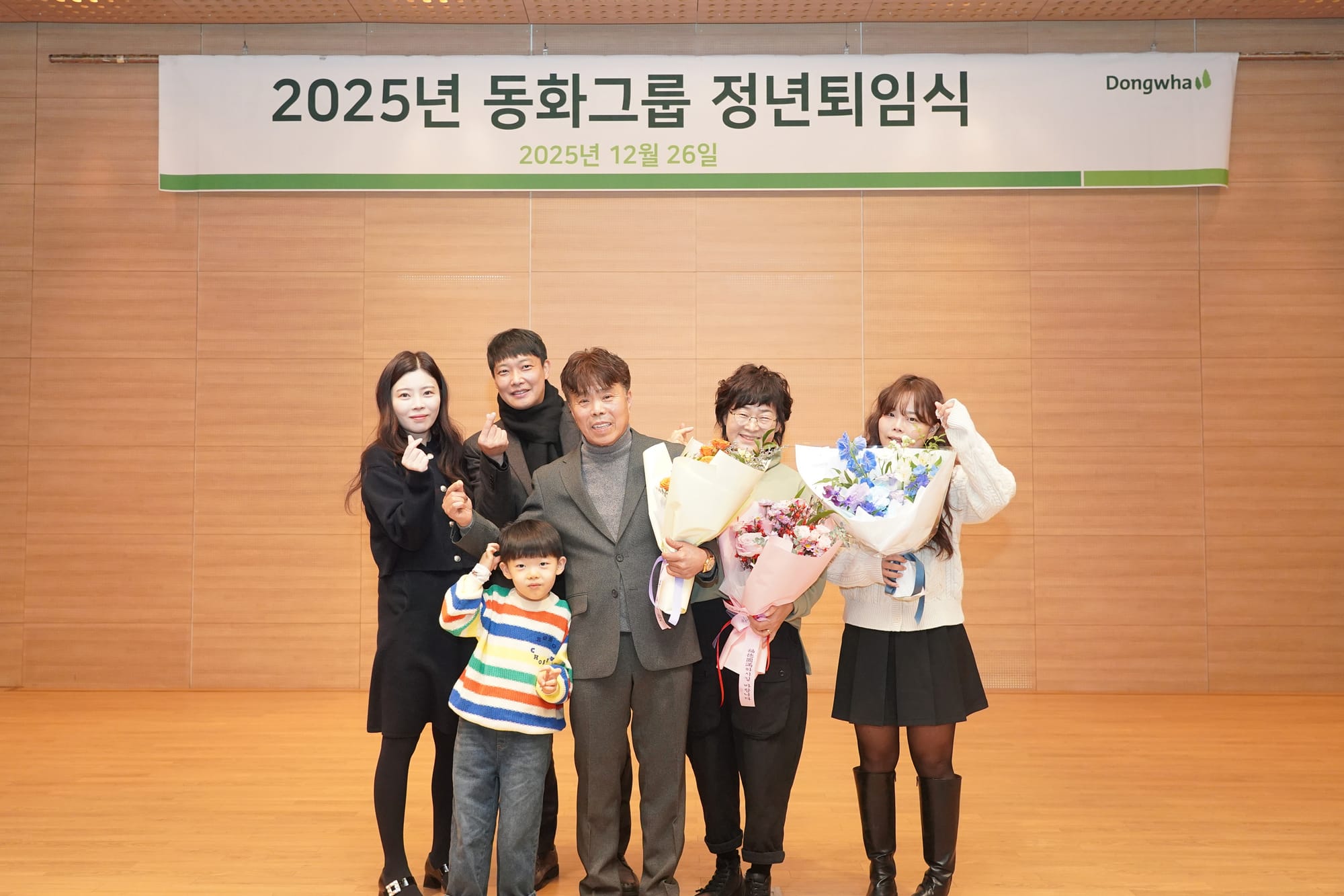 이 자리에는 적게는 23년, 많게는 무려 37년까지 동화기업에서 인생의 희로애락을 함께해 온 퇴임자들을 축하하기 위해 동료 임직원과 가족들이 함께했다. 떨리는 마음으로 동화에 첫 출근하던 20대 청년들은 어느덧 한 가정의 아버지가 되었고, 동화는 그 긴 세월을 함께한 삶의 터전이 됐다. 묵묵히 각자의 자리에서 회사를 지켜온 이들의 얼굴에는 그간의 시간에 대한 뿌듯함과 아쉬움, 그리고 인생의 새로운 2막을 향한 기대감이 함께 묻어났다.