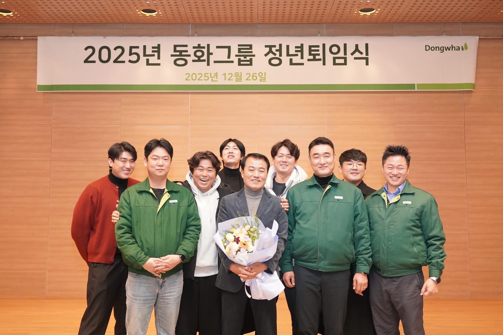 동화그룹의 발전을 위해 오랜 시간 헌신해 온 7명의 정년퇴임자를 위한 2025 정년퇴임식이 12월 26일, 가좌동 엠파크 본관에서 열렸다. 이날 대강당은 수십 년간 회사를 함께 일궈온 선배들을 향한 따뜻한 박수와 감사의 인사로 가득 찼다.