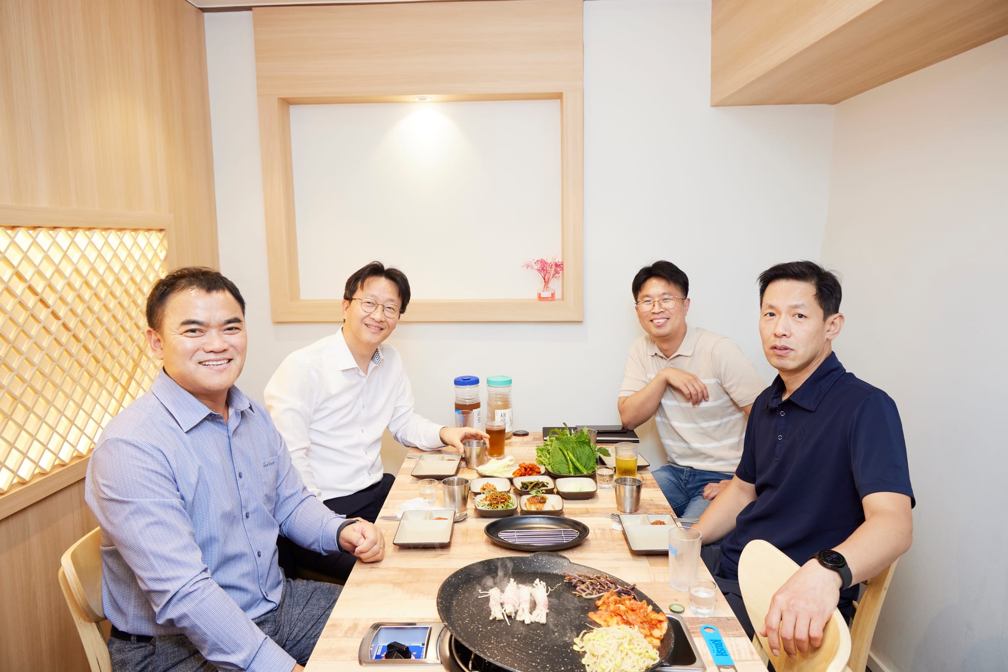 💬 박용근 종종 뭉치는 편이에요. 가족 모임을 한 적도 있어서 가족끼리도 잘 알고요. 저희가 1999년 8월에 입사했는데, 해외 파견 근무 중인 조욱환 동화일렉트로라이트 헝가리 법인장까지 총 다섯 명이 동기예요. 업무는 영업, 엔지니어링, 재무, IT로 모두 다르지만 동기들끼리 돕고 의지하면서 지금까지 함께 왔답니다.