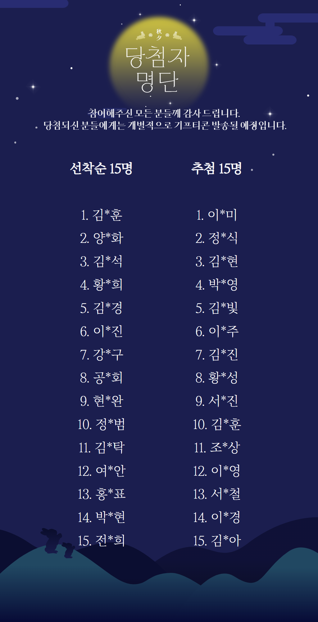 추석맞이 덕담 댓글 이벤트 당첨자 발표!