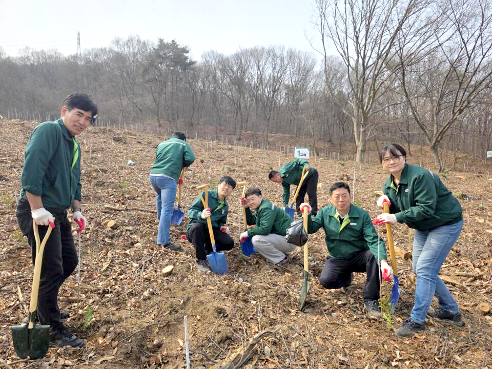 동화기업 직원들이 나무를 심고 있는 모습
